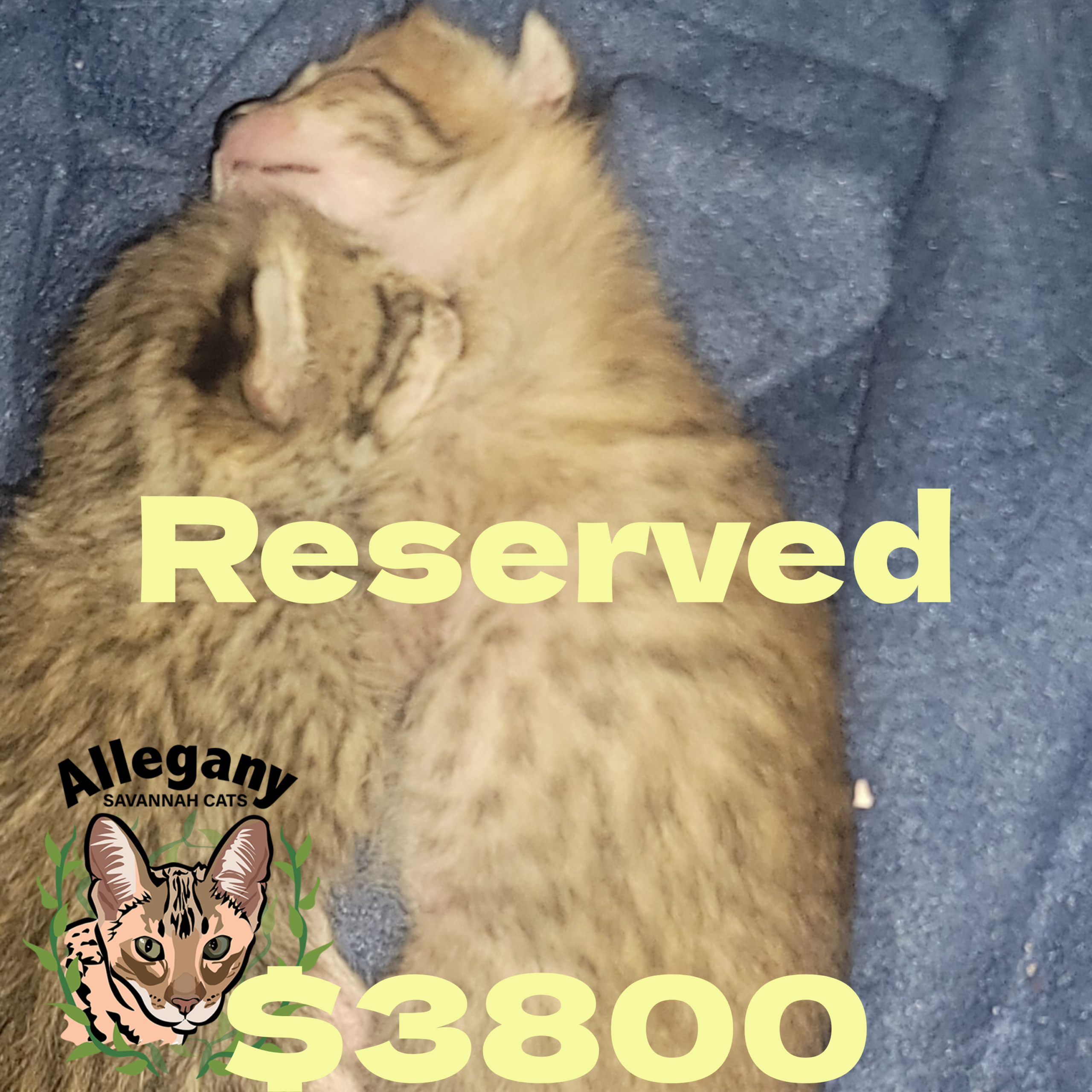 Please Note: Kittens are ready to leave their mothers at 13 weeks. After 13 weeks no deposit is necessary to reserve a kitten. If you’d like more info, you can contact me on Facebook or email (AlleganySavannahCats@hotmail.com). We do offer hand delivery of kittens at approximately $200 for 150 miles away and $500 for 300 miles away. For further distances you can contact me to make arrangements.